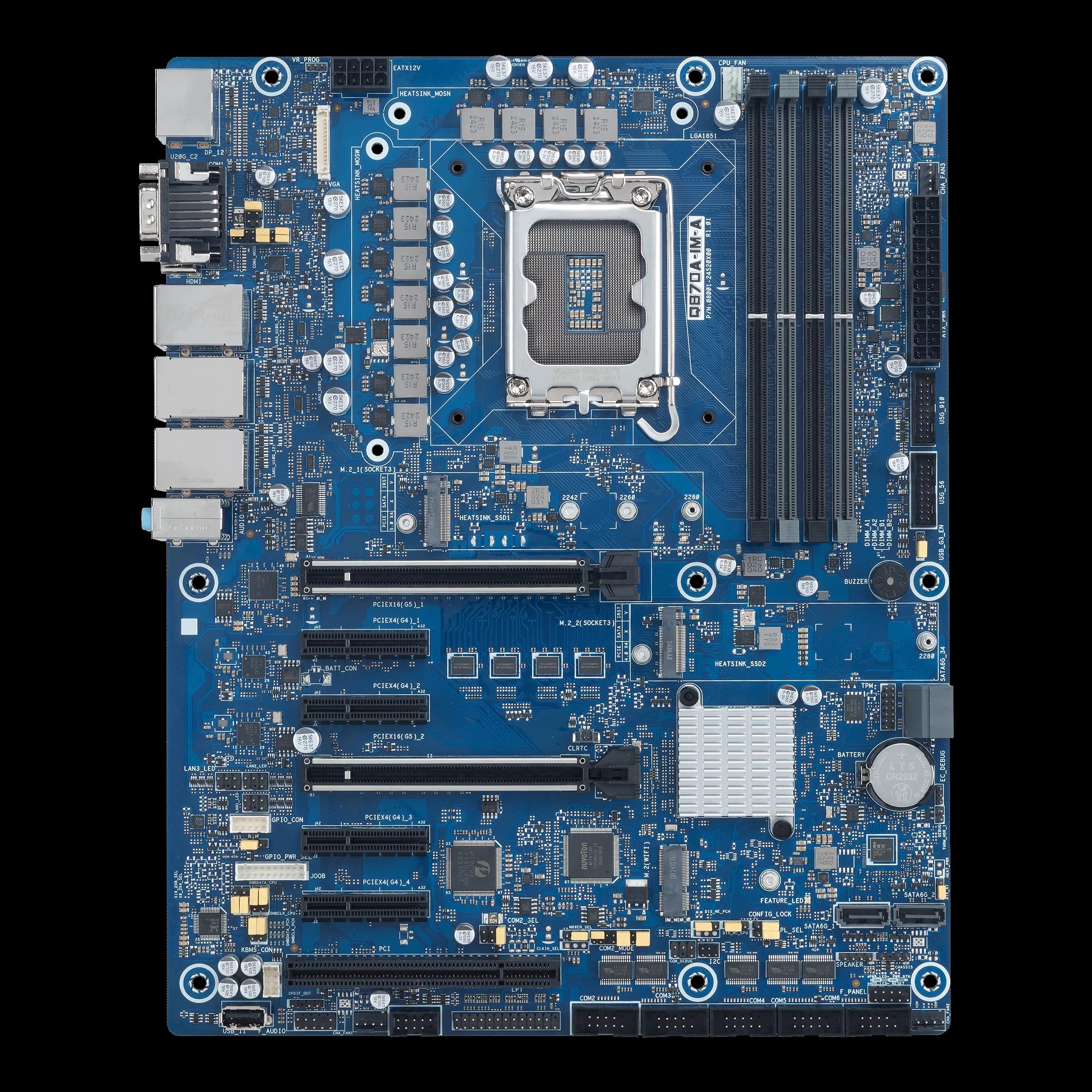 Q870 ATX motherboard, Intel® Core™ Ultra Processors(Series 2), 125W TDP, 4*U-DIMM, 3*Lan, 2*PCIe x16 slots, 1*PCI, VGA, HDMI, DP++, 3*M.2 slot, 6*COM, 4*SATA, USB 3.2 Gen 2, USB Type C